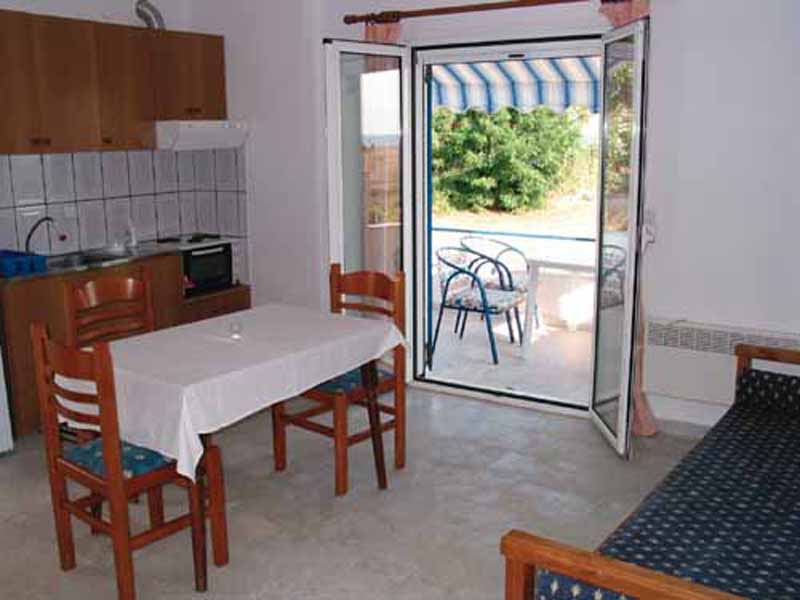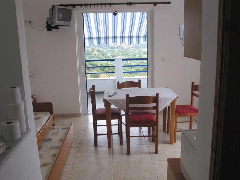 Jedes Appartement verfügt über ein Schlafzimmer mit Doppelbett oder zwei Einzelbetten, einen getrennten Wohn-/Schlafraum mit weiteren Schlafmöglichkeiten (ausziehbare Schlafcouch), integrierte Kochnische, TV, Bad mit Du/WC, Balkon mit Markise und freiem Meerblick sowie A/C.