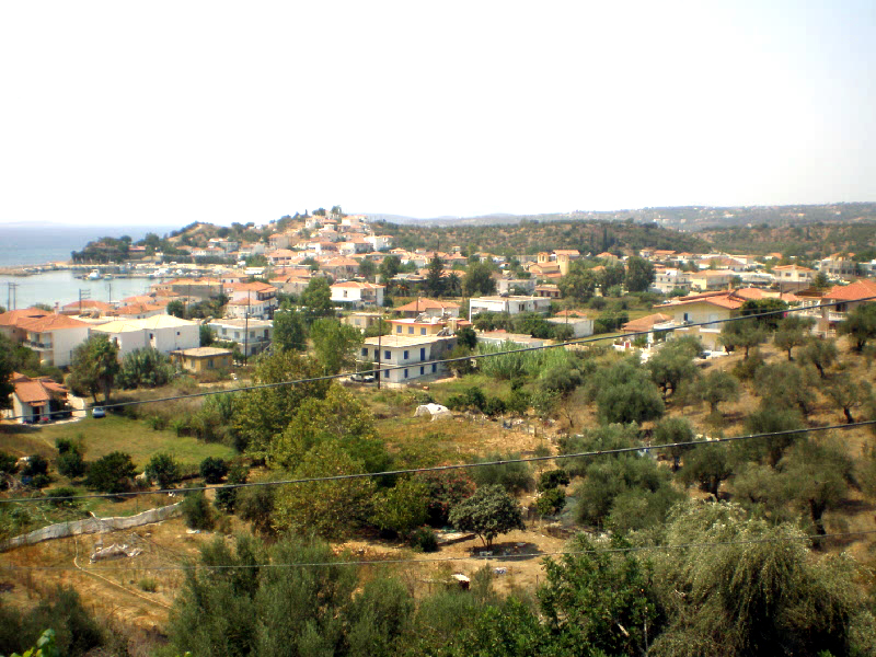 vom Strand entfernt, nicht weit vom Appartment Stella. Es hat einen wunderschönen Ausblick über den Ort und auf das Meer sowie die umliegenden Hügel.